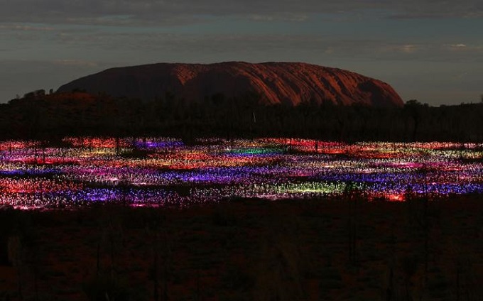 Now however his art has come full circle and the largest Field of Light ever created is blossoming under the infinite gaze of Uluru.  Voyages’ Executive GM Sales, Marketing and Distribution, Ray Stone heard Munro on the radio and decided it was time that his dream came home to where it began. Stone felt that - just like another field of dreams -“if you build it they will come. So with the help of Voyages, Qantas (which transported thousands of globes   from the UK without breaking a single one) and Investec, the impossible happened.