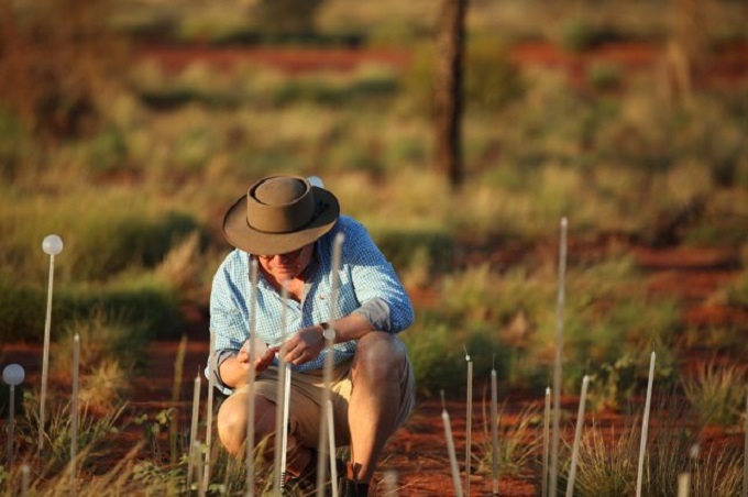 “There is something special about seeing the stems in this powerful, raw landscape” says Munro. “ I hope the installation helps visitors experience the infinite nature of this land. I like the idea of something so temporary set against the desert and the ancient rock. And also the] thought that we can be inspired by something much bigger than ourselves - that is this place.  Hopefully this huge, huge red rock will inspire other people as it inspired me".