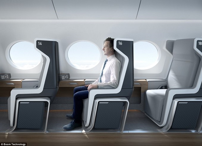 With up to 55 seats, the Boom aircraft can achieve load factors similar to or better than premium cabins in subsonic wide- bodies. With one spacious seat on each side of the aisle, each passenger has a large window, a personal overhead bin, and direct aisle access.