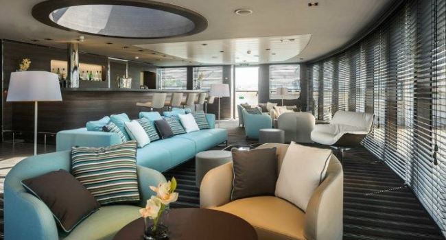 The idea behind Nuel's work for Compagnie du Ponant has been, he says, to evoke the spirit of a private yacht. ('But more like a boat for Armani than for a Russian oligarch' he adds quickly.)