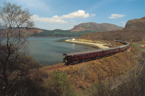 There are two dining cars on board: Raven, which can seat 20 guests and Victory 16 guests. Both luxurious cars are wonderfully of evocative of a more gracious era, which thanks to the company, has been superbly re-created. Tonight's menu comprises a vegetable terrine for starters, followed by a Scottish seafood medley of freshly-gathered local oysters and scallops from Kyle of Lochaish, Scottish salmon and Haddock. A trembling timbale of summer berries in rose wine jelly delivers a smooth finale. Carefully selected wines include a New Zealand Pinot Noir, a Chablis premier cru from Domaine de Meulieure, and a Coteaux du Layon St Lambert from the Loire. |