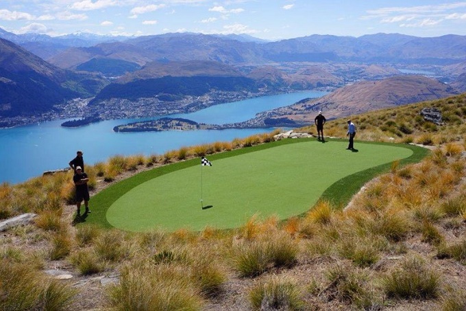 Over the Top Golf For the golfer who has done it all we suggest this fun offering from the cutting edge helicopter company, Over the Top. In association with the Golf Warehouse the company brings you the brings you New Zealand's most picturesque golf hole. At 4500 feet in the Southern Alps this par 3 golf experience overlooks Queenstown. There are four tee boxes for the altitude golfer to attempt their hole in one. With Over The Top helicopter access only, players will fly in, drive, chip, and putt out on the top. www.overthetopgolf.co.nz