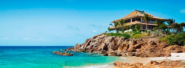 The island in the North Sound just off shore from Anguilla Point, is next door to Necker Island.  Richard Branson bought the island back in 2007 for what was reportedly a tidy $20 million and he has taken his time deciding whether to share this little island paradise with the world. Last year he decided the time was right and an eco-sensitive development (think solar panels and wind turbines) began.  Located on 125 acres, The Branson Estate includes three villas: Headland House, Mangrove Villa and Beach Villa, offering a total of 11 bedrooms for at least 22 guest There is also a Beach House and beach bar and a recreation area on the eastern side of the island where guests can take indulge in the normal island activities of snorkelling, swimming, diving, kite surfing and water sports. . The Beach House has a wraparound infinity pool, hot tub, and swim-up bar and nearby tennis pavilion.