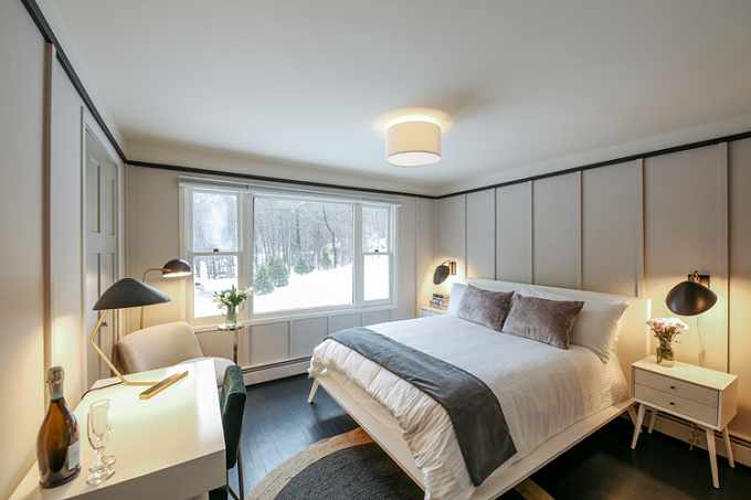Throughout the hotel, the eclectic collection of modern-style furniture harks back to the 1950s ‘golden years’ of the Catskills, when the region became an intrinsic part of mid-century Americana thanks to its popularity as a vacation resort. The style of the hotel celebrates both the location and history of the Catskills. An example of this is the area’s long association with game hunting is referenced by a beautiful rose gold, handblown glass deer’s head positioned above the hotel’s main fireplace. Embodying the values of a traditional country inn, the hotel’s luxury 75-rooms and 3-suites all offer views of the surround nature and feature oak floors and reclaimed timber accents and mid-century furniture alongside custom-made artisan pieces.