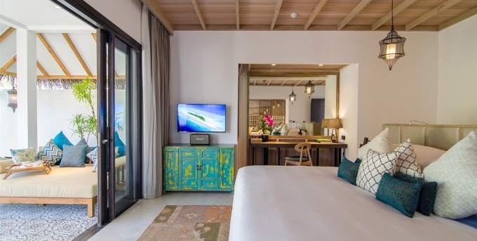 Opened: June 2016 THE latest Maldives island paradise opened in June However Finolhu is just a little different, because while many Maldives havens have a quiet honeymoon vibe –Finolhu is fun. This retro-inspired resort (from the class act that bought us the divine Amilla Fushi) has a distinctly party vibe. The resort setting is classic island paradise, right next to a 1.8km long white-sand on th edge of water as blue as 1960s eyeshadow. The 125 villas have white walls and wicker beach chairs but there are some added extras which will give you a clue to the funky undertone of it all.  All the rooms have instagram-worthy interiors with pops of retro colour. They also have vintage-style Marshall speakers. Then there’s the chilled-out Baa Baa Beach Club at the heart of the resort, just made for lounging away afternoons on a day bed while listening to world class DJ ‘s and sipping on cocktails created by world class mixologists .Party people can also hang out at the Fish & Crab Shack, a rustic venue halfway along Finolhu’s stunning 1.8km sandbar, just a swim, stroll or Dhoni ride across the lagoon. This is the place for a bucket of prawns and a crisp rosé from the beach bar. Located on the tip of the island with sweeping views of the Indian Ocean, Finolhu’s star dining spot, Kanusan spans three areas: a vibrant overwater bar area; a relaxed indoor space and an al fresco lower deck for an archetypal Maldivian experience with an open kitchen. Please don’t misunderstand us however, this isn’t Ibiza.