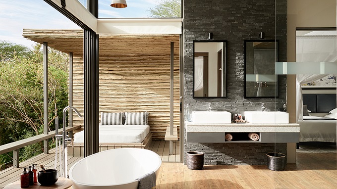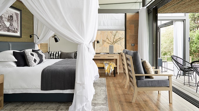 Sanctuary Olonana is the flagship property of the Sanctuary Retreats collection that Kent founded in 1999. And the recent renovation of Sanctuary Olonana Camp in Kenya has provided the perfect opportunity to reference its founder’s origins and celebrate his enduring legacy . The exclusive-use two-bedroom Geoffrey Kent Suite is set apart from the other suites and is far and away Olonana’s most extravagant accommodation option. With its clean lines and sleek modernist silhouette, stylish, contemporary interiors finished with locally quarried stone and Kenyan wood are furnished with bespoke furniture including plush king-sized beds and elegant nature-inspired furnishings. Each bedroom comes with its own coolly elegant slate and marble ensuite bathroom equipped with a rain shower and a generous freestanding bathtub so bathers can take in the sun or watch the stars from the water. Even better, the lodge is bordered by floor-to-ceiling windows that face towards the river below, as well as a wraparound deck incorporating its own raised infinity pool – the perfect spot to relax and unwind after a long day of game viewing.